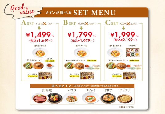 ・Aセット / Bセット / Cセットがディナータイムもランチ価格にてご利用いただけます。