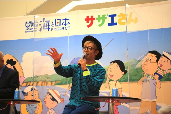 子供たちをはじめ全国の人たちに、海を未来へ引き継ぐアクションの輪を広げていくことを目指し、全国で毎年約3,500以上のイベントを開催、約250万人が参加している海と日本プロジェクトと、登場キャラクターの多くに海の生物・海産物の名前がつけられるなど、海と関わりの深いアニメである「サザエさん」が2022年度からコラボレーション。幅広い世代に対し、海から受けている恩恵や海洋問題について周知啓発を行っていきます。