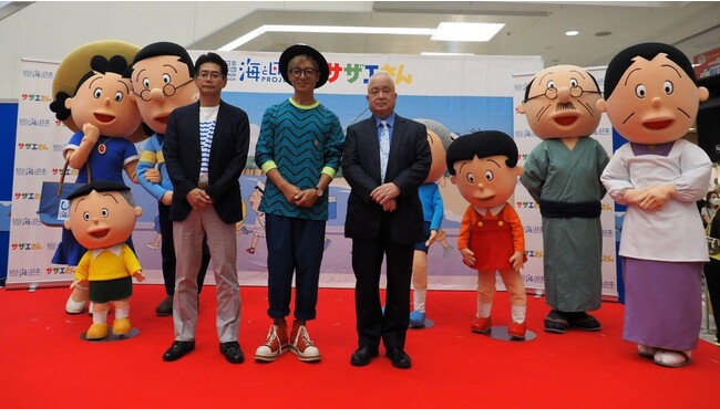 イベントには、アニメ「サザエさん」にも登場したことがあり、マリンスポーツや海水浴が盛んな神奈川県藤沢市(湘南・江の島など)の観光親善大使もつとめる、つるの剛士さんをはじめ、「サザエさん」でお馴染みの長谷川町子美術館の川口館長、そしてサザエさんご本人(着ぐるみ)らが参加し、会場を盛り上げました。
