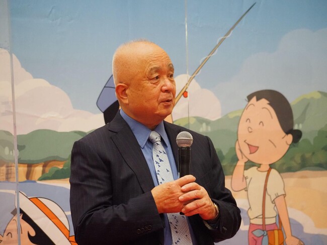 川口館長は、サザエさん誕生秘話を語ってくれました。長谷川町子先生が新聞社からの依頼で4コマ漫画連載をスタートしたことがきっかけで誕生したサザエさん。なかなか主人公の名前が決まらず、長谷川町子先生は毎日百道浜を散歩し、海を眺め、磯野家のそれぞれのキャラクターの名前をつけたと言います。イベントでは川口館長からサザエさん誕生当初の昭和30年と現在の福岡県・百道浜について紹介してくれました。
