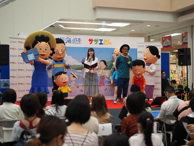 日本財団「海と日本プロジェクト」では、“日本人の海離れ”が進む中、海の魅力や環境の問題について多くの方に知っていただきたいと、登場キャラクターの多くに海の生物・海産物の名前がつけられるなど、海と関わりの深い世界一の長寿アニメ「サザエさん※」とタッグを組んだプロジェクトを今年度からスタートし、本取り組みの一環として、特別イベントをイトーヨーカドー・木場店で10月1日(土)に開催いたしました。