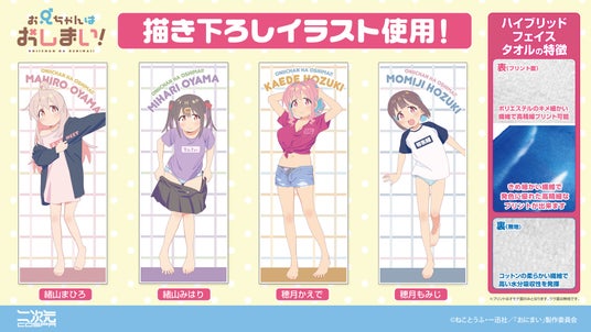 『お兄ちゃんはおしまい!』より、まひろ、みはり、かえで、もみじ、4人それぞれの「ハイブリッドフェイスタオル」が二次元コスパから登場。