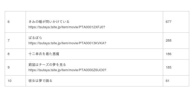 TSUTAYAプレミアム 映画ファン賞 TOP10ランクイン作品情報