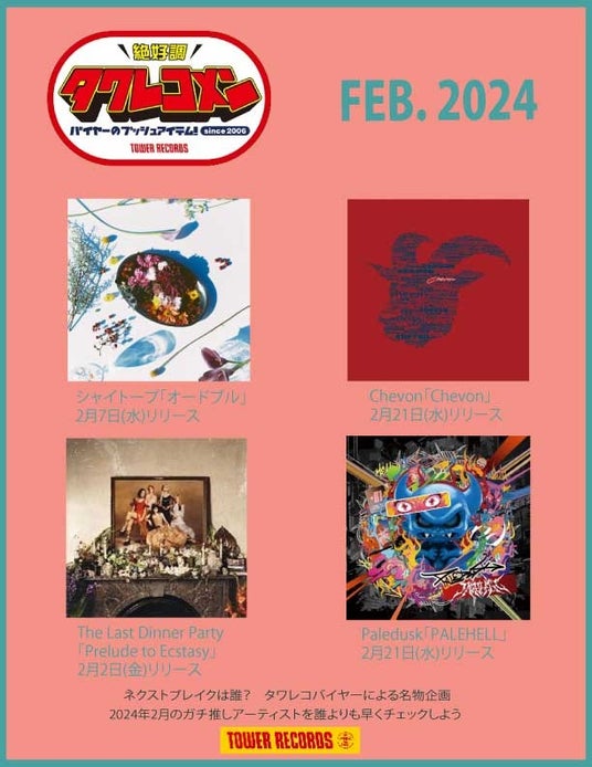 タワーレコードでは、2024年2月のタワレコメンのプッシュアイテムが決定しました。