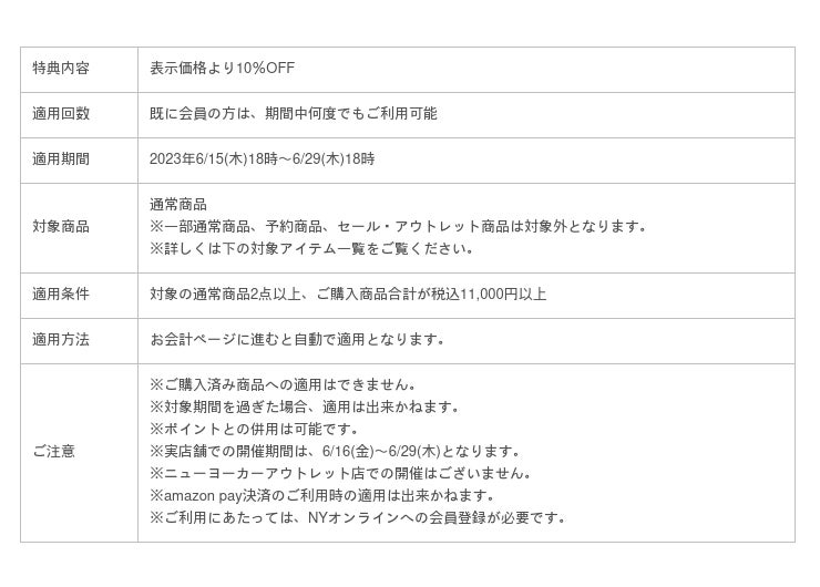 期間中、対象の通常商品2点以上、商品合計が税込11,000円以上のご購入で10%OFFとさせていただきます!