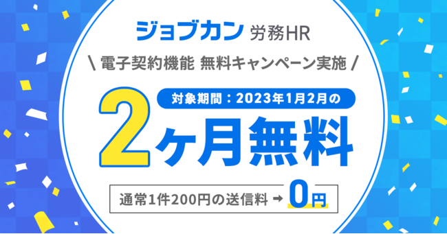 ・「ジョブカン労務HR」の電子契約機能の2023年1月~2月利用分の送信料を無料提供