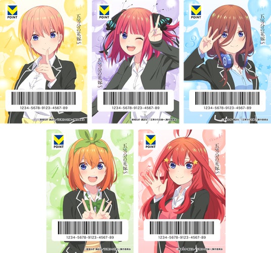 CCCMKホールディングス株式会社(本社:神奈川県横浜市、代表取締役社長兼CEO:高橋 誉則)は、Vポイントアプリの「モバイルVカード」を好きなデザインに着せかえできる「Vキセカエ」(https://ip.tsite.jp/guide)において、TVスペシャルアニメ『五等分の花嫁∽』より、メインキャラクターを中心としたデザイン全5種を、2025年6月11日(水)から2026年6月10日(水)まで期間限定で販売いたします。