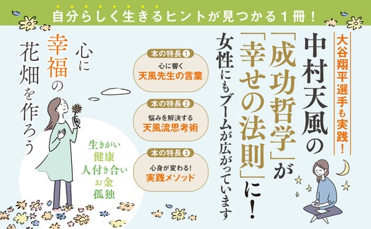 日本のリーダーたちに影響を与え、大谷翔平選手も著書を愛読していることで知られる昭和の哲人・中村天風。これまで「ビジネスパーソン向けの成功哲学」として語られることの多かった天風哲学を、本書では「すべての人に役立つ『幸せの教え』」として再構築。やさしい文章と親しみやすいイラストの構成が、「人間関係のモヤモヤが晴れた」「人に振り回されず、自分らしく生きられるようになった」と、女性層を中心に共感の輪が広がっています。