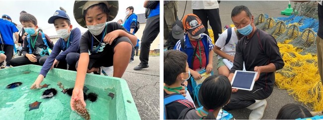 1cmほどの赤ちゃんを見た子どもたちからは、「かわいい!」という声が。ナマコの変態、増殖について学んだ後、ナマコのタッチプールも体験。「見た目よりもずっとムニムニしてる」「ペットにしたい」などの声が上がっていました。