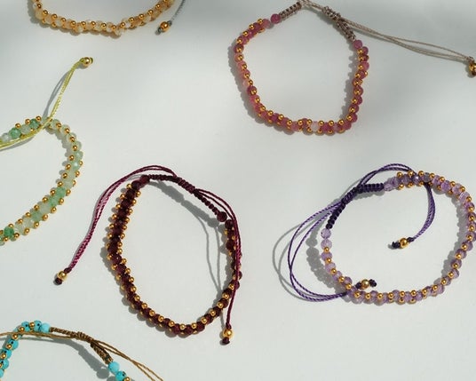 ゴールドの粒で、愛らしいカラーストーンを連ねたブレスレット。