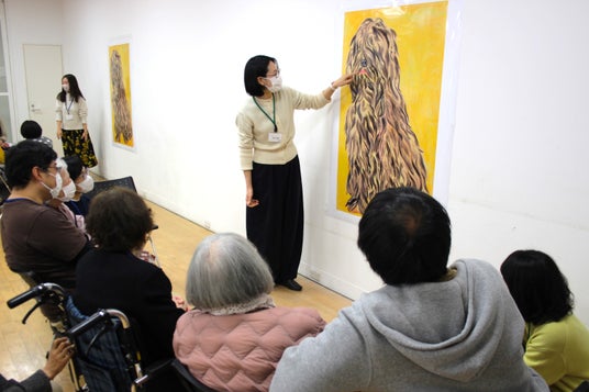 横浜市民ギャラリーあざみ野がある青葉区は、平均寿命が全国トップクラスで、多くの高齢者が暮らす地域です。当館では、アートを通じて認知症について学びあう機会の創出及び、高齢者・認知症の方がその家族や介護者とともに作品鑑賞を楽しめるための取り組みを2022 年度より行っています。地域にあるケアプラザや若年性認知症の支援事業所と連携・協働した美術鑑賞会やサポーター養成研修を行う他、認知症について学ぶ講座など、多様なプログラムを実施します。