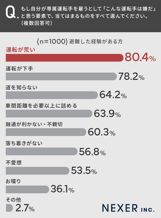 株式会社NEXER・「こんな運転手は嫌だと思う運転手」に関する調査