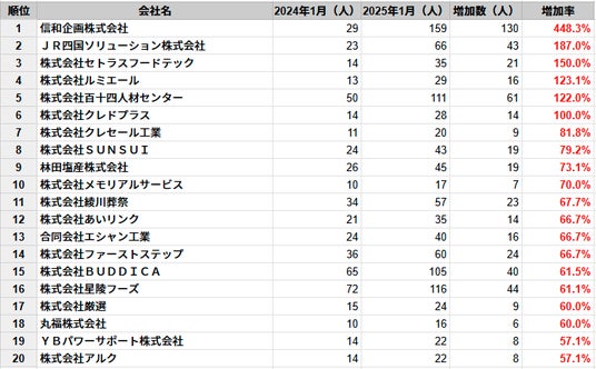 (※増加率=(2025年従業員数 - 2024年従業員数) ÷ 2024年従業員数 × 100)