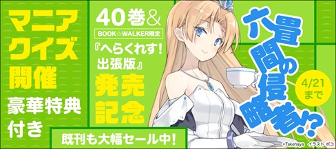 ※対象となるのは、キャンペーン期間中に全問正解し、かつ、『【BOOK☆WALKER限定】六畳間の侵略者!? へらくれす!出張版』もしくは『【BOOK☆WALKER限定】六畳間の侵略者!? 40 電子特装版』をご購入いただいた方です。