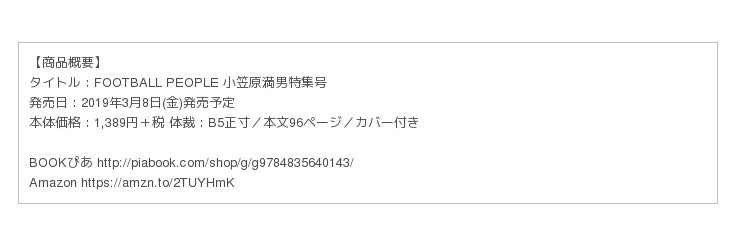 本日3月8日、ぴあ株式会社より『FOOTBALL PEOPLE 小笠原満男特集号』が発売となりました。