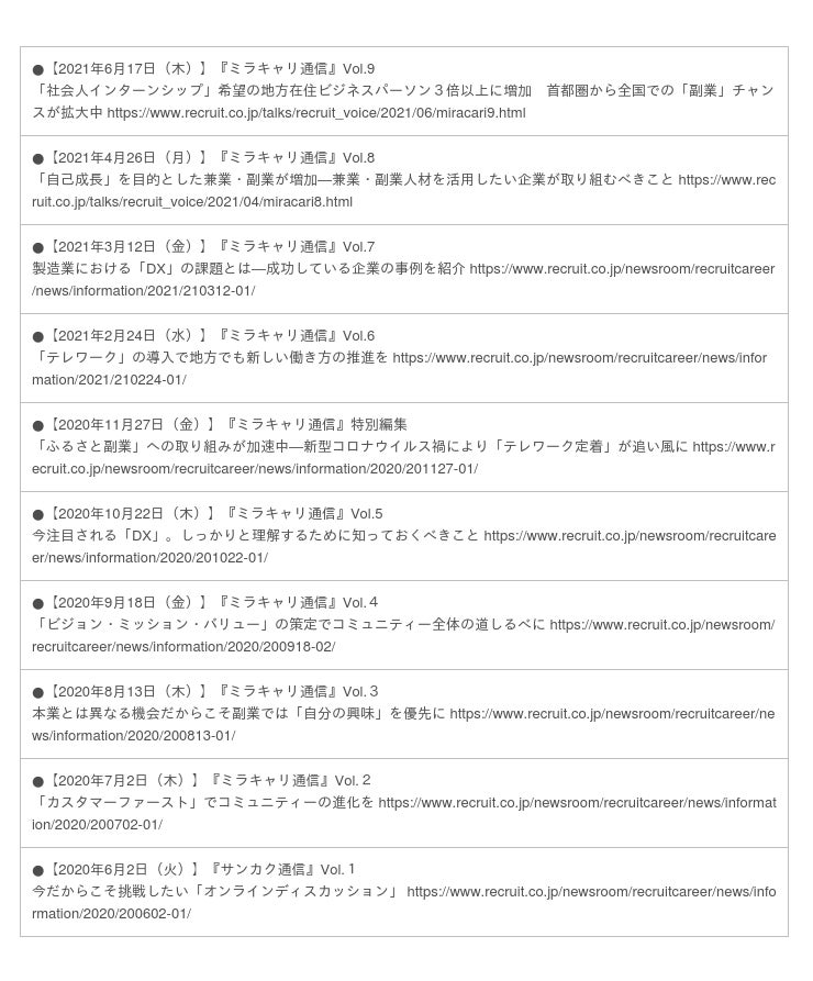■『ミラキャリ通信』バックナンバー: