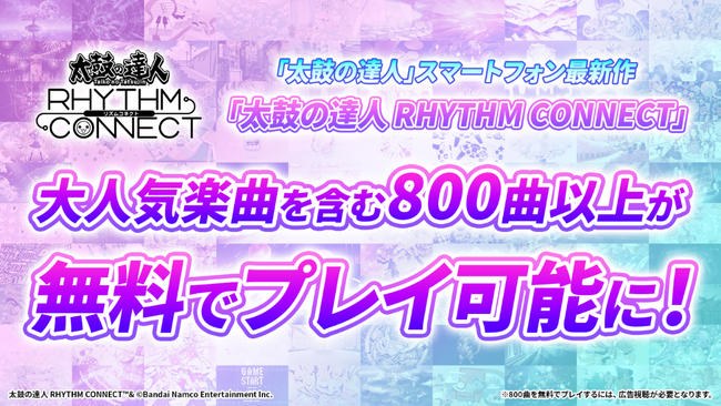 大人気楽曲を含む800曲以上が無料でプレイできる「太鼓の達人」スマートフォン最新作 「太鼓の達人 RHYTHM CONNECT」配信中!