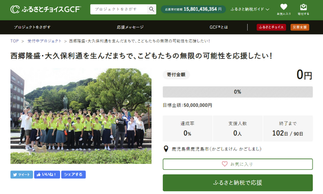 ◆プロジェクト名: 西郷隆盛・大久保利通を生んだまちで、こどもたちの無限の可能性を応援したい!