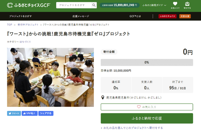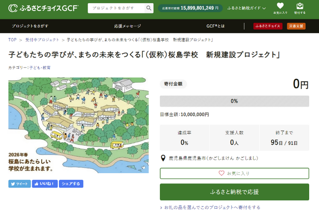 鹿児島県鹿児島市(市長:下鶴 隆央、以下「鹿児島市」)と国内最大級のふるさと納税総合サイト「ふるさとチョイス」( https://www.furusato-tax.jp/ )を企画・運営する、株式会社トラストバンク(本社:東京都渋谷区、代表取締役:川村憲一、以下「トラストバンク」)は、本日12月1日トラストバンクが提供する、ふるさと納税制度を通じてクラウドファンディング型で寄付を募る仕組み「ガバメントクラウドファンディング(R)」(以下「GCF(R)」)で、子育て・子ども教育の拡充を目的とした3プロジェクト同時に開始します。募集期間は2023年12月1日~2024年2月28日で、目標寄付金額はそれぞれ1,000万円です。