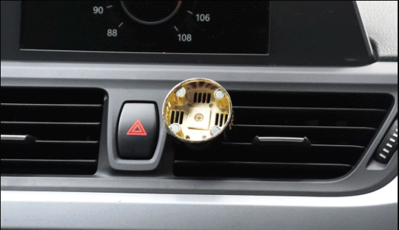 エアコンの吹出し口にクリップを挟み込むだけで、お気に入りのアロマの香りがエアコンの風に載って車内いっぱいに広がります。