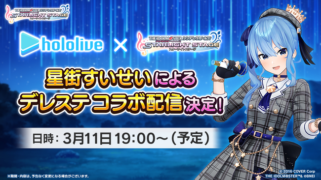 星街すいせいによるデレステコラボ配信が3月11日(月)19:00開始予定!みんなで一緒にデレステを楽しむ配信を予定しています!
