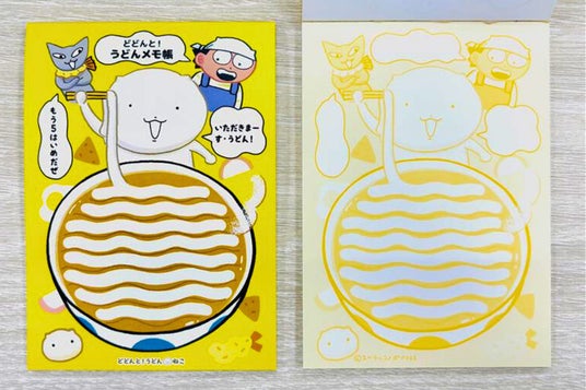 「どどんと!うどんメモ帳」がもらえます!一部書店で『うどんねこ まほうのことば、ミソニコミ!』をご購入いただくと、スケラッコさん描き下ろしイラストによる「どどんと!うどんメモ帳」がもらえます。うどんにメモするという、革“メン”的なアイテムです。