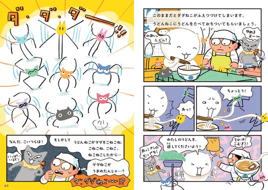 うどんねこにそばねこ、ピザねこなど、さまざまなねこたちが生地をこねこ…ねこしたことによって生まれてきましたが、今度はダダを“こねる”ことで、ねこが誕生!? わがまま放題の“ダダねこ”たちとの交流を通し、うどんねこが成長する様子も4巻の見どころのひとつです