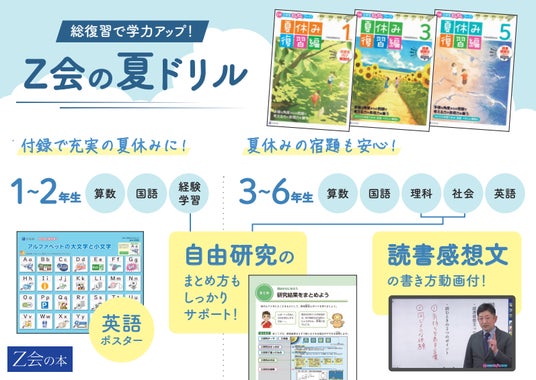 株式会社増進会ホールディングス(Z会グループ)のグループ会社、株式会社Z会ソリューションズは、小学生を対象に『Z会小学生わくわくワーク 夏休み復習編』を2024年6月7日(金)に発刊。