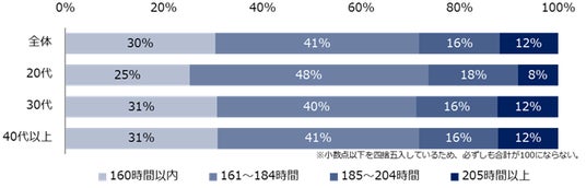 【図5】「正社員(フルタイム勤務)」の方に伺います。1ヵ月の労働時間を教えてください。(年代別)