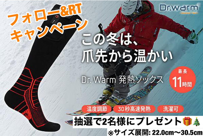 株式会社Gloture(本社:東京都港区、代表取締役:CHEN JUNYI)は、ECサイト『GLOTURE.JP』で好評販売中のリモコンで温度調整できる発熱靴下「Dr. Warm 発熱ソックス」について、GlotureのTwitterアカウントをフォローし、対象の投稿をリツイートすることで、抽選で2名様に当たるキャンペーンを12月6日より行っています。履いて30秒で足の先までほかほかになるハイテク靴下が手に入るチャンスなので、この機会にぜひご応募ください。(1月5日締め切り)