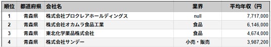 株式会社SalesNow(本社:東京都渋谷区、代表取締役:村岡功規、以下「当社」)は、国内540万社の企業情報を完全網羅した日本最大級のデータベース「SalesNow DB」より、上場企業を対象に青森県に本社を置く企業の平均年収データを集計・分析し、「平均年収ランキング」として公開いたしました。