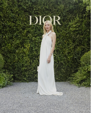エラ・リチャーズは、2022年ハイジュエリー コレクションより、ホルターネックに編み込みがあしらわれたシルククレープのドレープドレスに、ディオールのハイジュエリー コレクションより、ホワイトゴールドにダイヤモンド、ルビー、マザーオブパールがあしらわれた「タイ&ディオール」のブレスレットとリングを纏い登場。