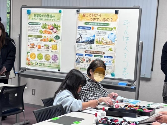 あわせて、服の素材や野菜染めの仕組みを紹介するパネル展示も行い、「リユース」や「アップサイクル」といった概念を体験的に学べる機会を提供しました。