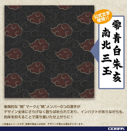 ・象徴的な“暁”マークと“暁”メンバーの指輪に記された9つの漢字がデザイン全体にさりげなく散りばめられており、インパクトがありながらも、色味を抑えることで落ち着いた仕上がりに!