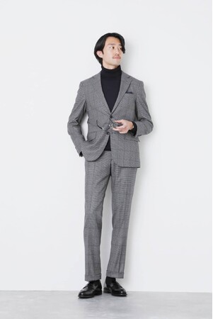 単品使いにも活躍することで人気の高いセットアップスーツ。今シーズンは、Super100’sのウール素材をベースにストレッチ性を加えた千鳥オーバーペイン柄のセットアップスーツを展開します。