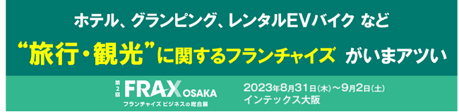 8月31日(木)から3日間、インテックス大阪にて開催される関西最大級のフランチャイズビジネスの総合展「FRAX(フラックス) OSAKA」では、旅行・観光に関するフランチャイズが出展します。ぜひこの機会に、旅行・観光業の”今”をご取材ください。