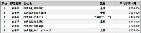 株式会社SalesNow(本社:東京都渋谷区、代表取締役:村岡功規、以下「当社」)は、国内540万社の企業情報を完全網羅した日本最大級のデータベース「SalesNow DB」より、上場企業を対象に岩手県に本社を置く企業の平均年収データを集計・分析し、「平均年収ランキング」として公開いたしました。