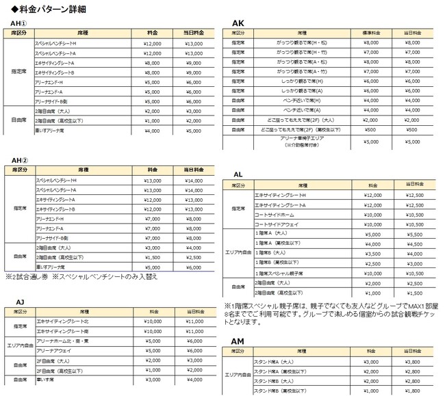 ・お付き添いの方はパイプ椅子でのご観戦となります。また同伴者が2名以上の場合は同様の席種をご購入ください。