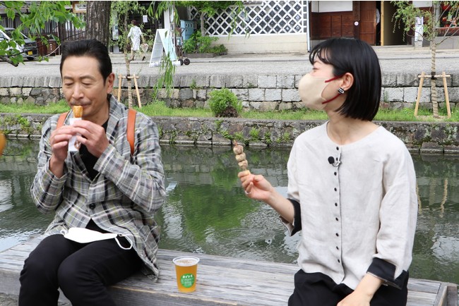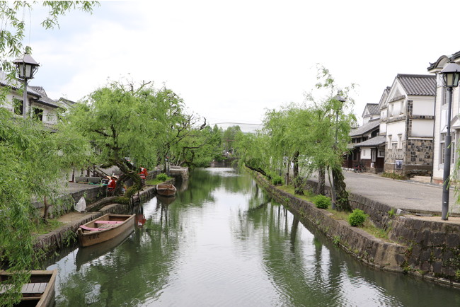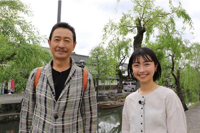 旅のお相手は小塚舞子。二人はまず、白壁の蔵屋敷や柳並木など江戸時代の美しい町並みが残る倉敷美観地区へ。