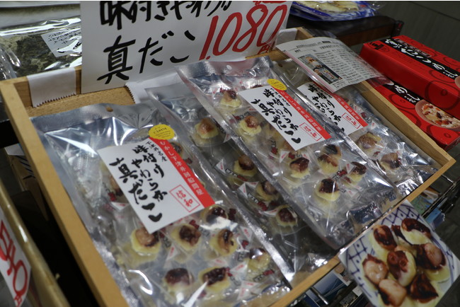 奥の蔵にある販売店で下津井名物のタコとチーズを使った珍味をいただきます。