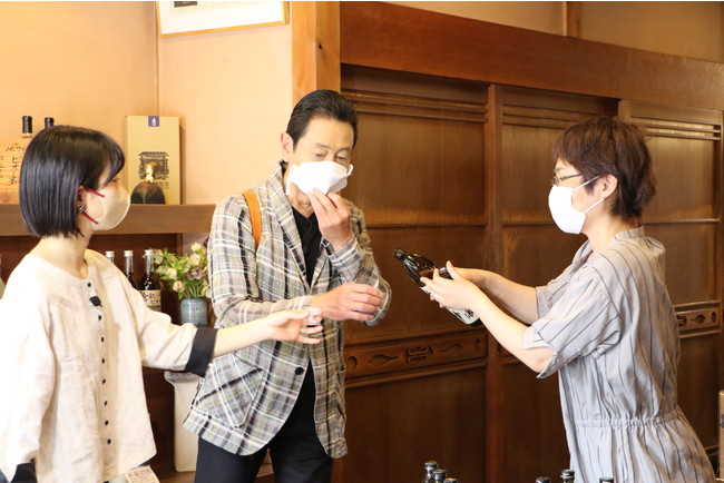 続いて岡山の地酒専門店へ。甘口から辛口まで順に並んだ日本酒の中から「馬が合う」という名前のお酒を試飲します。果たしてお味は?
