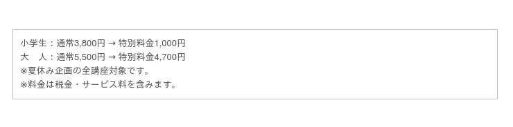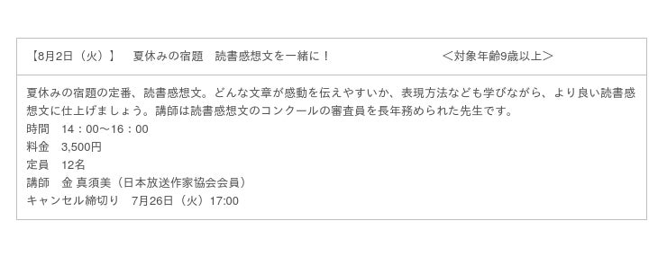 毎年開催している夏休み企画では、夏休みの宿題におすすめの講座全9種類をご用意します。