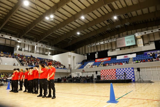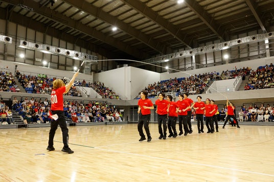 10名で挑む1分間の長縄跳びを2回実施し、各ターンの最高連続成功回数を合計した数で赤・青対抗戦を行った。息の合ったチームワークが光り、会場からは大きな声援が送られた。赤チーム57回、青チーム42回で、赤チームの勝利となった。