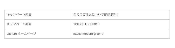 株式会社Gloture(本社:東京都港区、代表取締役:CHEN JUNYI)は、本日12月22日より、自社ECサイト「GLOTURE.JP」にて、「Xmas & 年末年始特別セール第一弾」として、期間限定で全てのご注文について配送料が無料になる無料配送を実施しいたします。