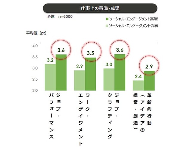 パフォーマンス、ワーク・エンゲイジメント、ジョブ・クラフティング(※)などの指標もすべて高い傾向が見られた。