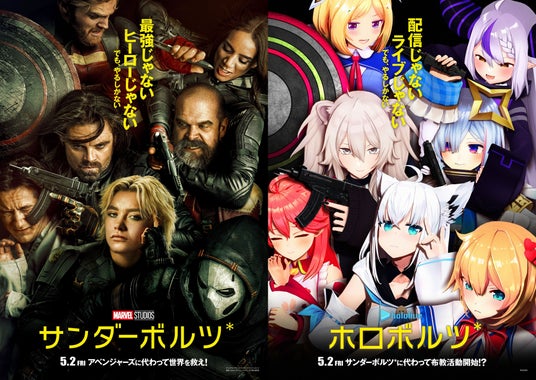 カバー株式会社(本社:東京都区港区、代表取締役社長:谷郷元昭)が運営するVTuber事務所「ホロライブプロダクション」に所属する白上フブキ、アキ・ローゼンタール、赤井はあと、さくらみこ、天音かなた、獅白ぼたん、ラプラス・ダークネスの7名が、ウォルト・ディズニー・ジャパン株式会社(本社:東京都港区)配給の本日5月2日(金)公開映画『サンダーボルツ*』とのスペシャルコラボレーション企画を実施することが決定いたしました。