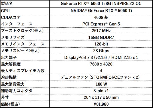 https://jp.msi.com/Graphics-Card/GeForce-RTX-5060-Ti-8G-INSPIRE-2X-OC