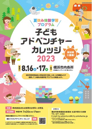 横浜市内の小学生に向けて「主体的・対話的で深い学びのきっかけづくり」及び「社会参加のきっかけづくり」の場と機会を提供するため、民間企業や団体、大学、公的機関などの協力を得て、夏休み体験学習プログラム「子どもアドベンチャーカレッジ2023」を開催します。