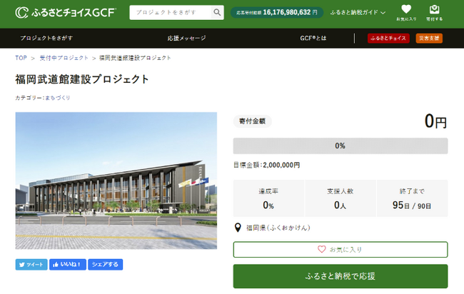 福岡県(知事:服部 誠太郎)と国内最大級のふるさと納税総合サイト「ふるさとチョイス」( https://www.furusato-tax.jp/ )を企画・運営する、株式会社トラストバンク(本社:東京都渋谷区、代表取締役:川村憲一、以下「トラストバンク」)は、12月15日、トラストバンクが提供する、ふるさと納税制度を通じてクラウドファンディング型で寄付を募る仕組み「ガバメントクラウドファンディング(R)」(以下「GCF(R)」)で、福岡武道館建設プロジェクトを開始します。募集期間は2023年12月15日~2024年3月13日で、目標寄付金額は200万円です。