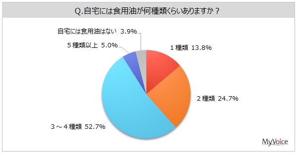 自宅にある食用油の種類数